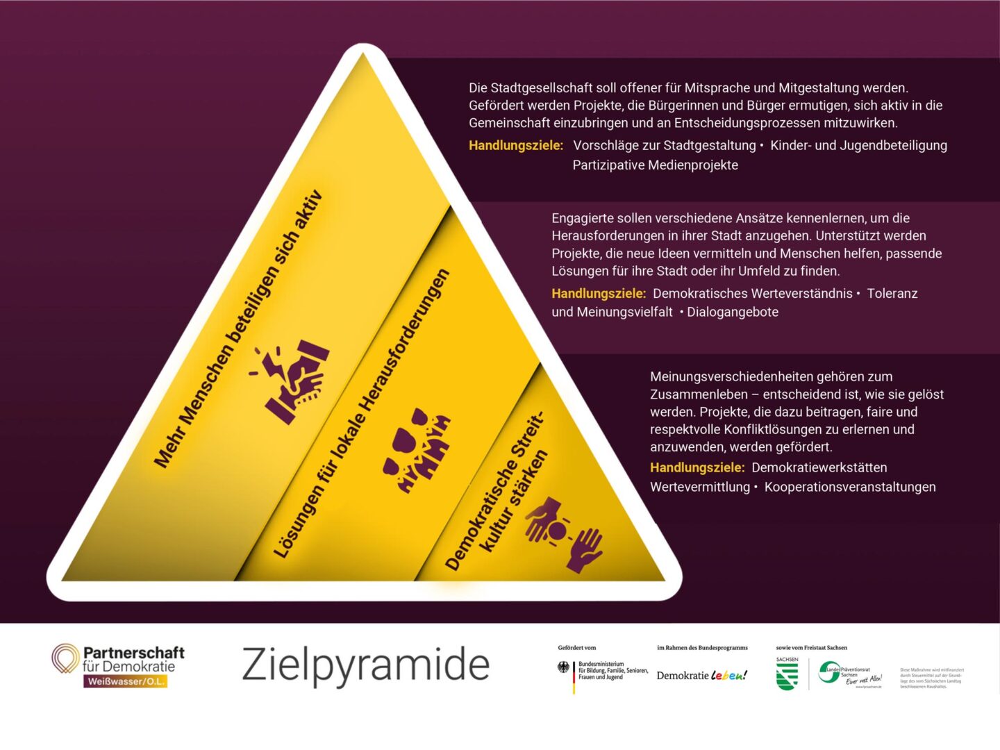 In der Partnerschaft für Demokratie Stadt Weißwasser/O.L. – und in allen anderen Partnerschaften auch – kommen Verantwortliche aus der kommunalen Politik und Verwaltung und Aktive aus der Zivilgesellschaft zusammen. Sie handeln auf lokaler Ebene, um Demokratie und Vielfalt zu fördern und Extremismus, Gewalt und Menschenfeindlichkeit zu reduzieren.